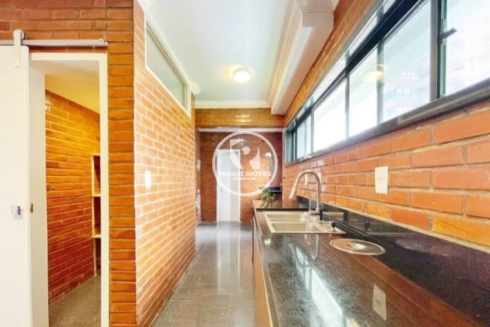 A planta é bem distribuída, composta por sala para dois ambientes, três quartos, sendo uma suíte, e três banheiros com revestimento em porcelanato branco, que proporciona sofisticação e fácil manutenção. A dependência de empregada foi desmembrada, o que resultou em uma cozinha ampliada e funcional, com móveis planejados de excelente qualidade. O piso em porcelanato negro confere elegância e modernidade a todo o apartamento.